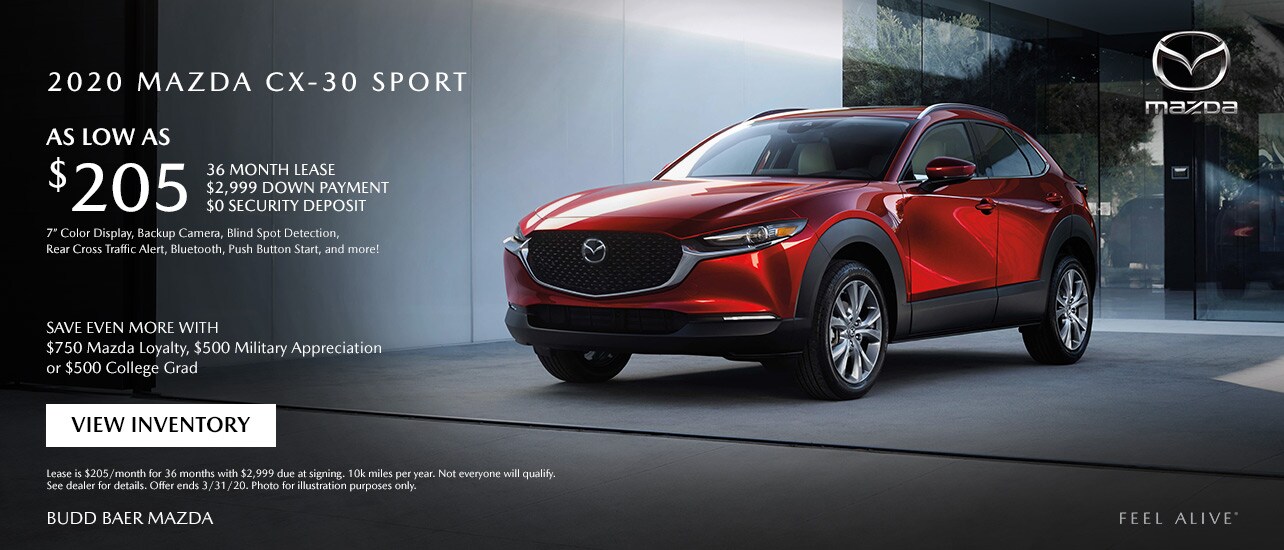 Budd Baer Mazda is ready to do whatever it takes to help you upgrade your daily commute with a better vehicle. If you're after a feature-filled and versatile SUV, be sure to check out our Monthly Specials for the new Mazda CX-30. With these competitive specials, it'll be easy to invest in this new model and make every trip you embark on more enjoyable.
