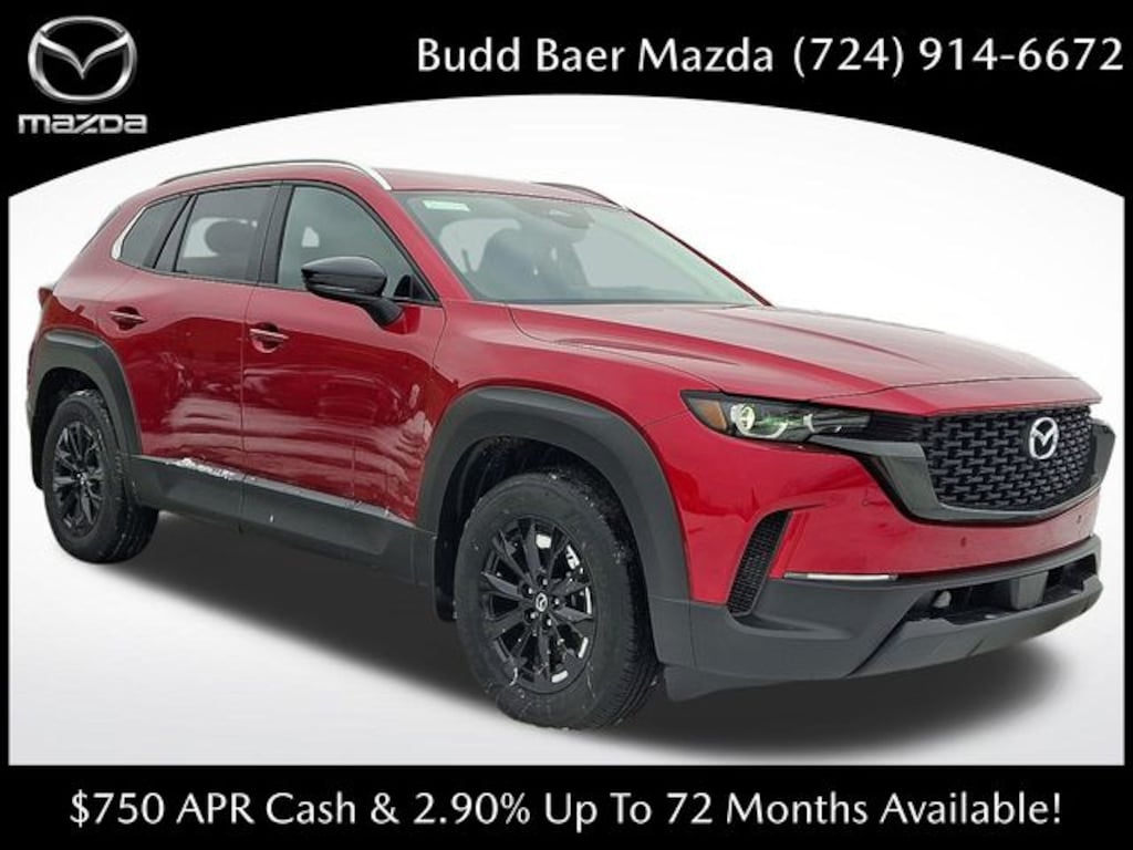 What Does Budd Baer Mazda Offer Drivers from Washington, Canonsburg, St. Clairsville, Bethel Park and Wheeling? Truly Exceptional Customer Service from Every Angle. This vehicle comes equipped with Weather Package, 2.5L 4-Cylinder, 4-Wheel Disc Brakes, 8 Speakers, ABS brakes, Air Conditioning, Alloy wheels, AM/FM radio, AppLink/Apple CarPlay and Android Auto, Auto High-beam Headlights, Automatic temperature control, Brake assist, Bumpers: body-color, Delay-off headlights, Driver door bin, Driver vanity mirror, Dual front impact airbags, Dual front side impact airbags, Electronic Stability Control, Emergency communication system: MAZDA CONNECT, Exterior Parking Camera Rear, Front and Rear Splash Guards, Front anti-roll bar, Front Bucket Seats, Front Center Armrest, Front dual zone A/C, Front reading lights, Front wheel independent suspension, Fully automatic headlights, Half Leatherette Seat Trim, Heated door mirrors, Heated Front Bucket Seats, Heated front seats, Illuminated entry, Knee airbag, Leather Shift Knob, Leather steering wheel, Low tire pressure warning, Occupant sensing airbag, Outside temperature display, Overhead airbag, Overhead console, Panic alarm, Passenger door bin, Passenger vanity mirror, Power door mirrors, Power driver seat, Power Liftgate, Power moonroof, Power steering, Power windows, Radio data system, Radio: AM/FM/HD 8-Speaker Audio Sound System, Rain sensing wipers, Rear seat center armrest, Rear window defroster, Rear window wiper, Remote keyless entry, Soul Red Crystal Metallic Paint Charge, Speed control, Speed-sensing steering, Split folding rear seat, Spoiler, Steering wheel mounted audio controls, Tachometer, Telescoping steering wheel, Tilt steering wheel, Traction control, Trip computer, Turn signal indicator mirrors, Variably intermittent wipers, and Wheels: 17 x 7J Aluminum Alloy Black Metallic Finish. KBB Fair Market Range High: $35,800 Preferred 39/37 City/Highway MPG