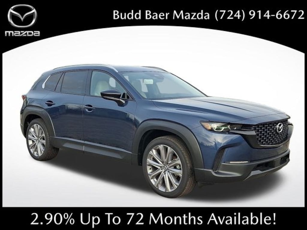 What Does Budd Baer Mazda Offer Drivers from Washington, Canonsburg, St. Clairsville, Bethel Park and Wheeling? Truly Exceptional Customer Service from Every Angle. This vehicle comes equipped with 12 Speakers, 4-Wheel Disc Brakes, ABS brakes, Air Conditioning, Alloy wheels, AM/FM radio: SiriusXM, AppLink/Apple CarPlay and Android Auto, Auto High-beam Headlights, Auto-dimming Rear-View mirror, Automatic temperature control, Brake assist, Bumpers: body-color, Carpet Cargo Mat, Delay-off headlights, Driver door bin, Driver vanity mirror, Dual front impact airbags, Dual front side impact airbags, Electronic Stability Control, Emergency communication system: MAZDA CONNECT, Exterior Parking Camera Rear, Front anti-roll bar, Front Bucket Seats, Front Center Armrest, Front dual zone A/C, Front reading lights, Front wheel independent suspension, Fully automatic headlights, Heated and Ventilated Front Seats with 3 Level Adjustment, Heated door mirrors, Heated front seats, Illuminated entry, Ingot Blue Metallic and White Interior, Knee airbag, Leather Seat Trim, Leather Shift Knob, Leather steering wheel, Low tire pressure warning, Memory seat, Occupant sensing airbag, Outside temperature display, Overhead airbag, Overhead console, Panic alarm, Passenger door bin, Passenger vanity mirror, Power door mirrors, Power driver seat, Power Liftgate, Power moonroof, Power passenger seat, Power steering, Power windows, Radio data system, Radio: AM/FM/HD Bose 12-Speaker Audio Sound System, Rain sensing wipers, Rear seat center armrest, Rear window defroster, Rear window wiper, Remote keyless entry, Speed control, Speed-sensing steering, Split folding rear seat, Spoiler, Steering wheel mounted audio controls, Tachometer, Telescoping steering wheel, Tilt steering wheel, Traction control, Trailer Hitch with 4-Pin Harness, Trip computer, Turn signal indicator mirrors, Variably intermittent wipers, Ventilated front seats, and Wheels: 20 x 8J Aluminum Alloy Black Metallic with Machining Cut. KBB Fair Market Range High: $36,000 2.5 S Premium 24/30 City/Highway MPG