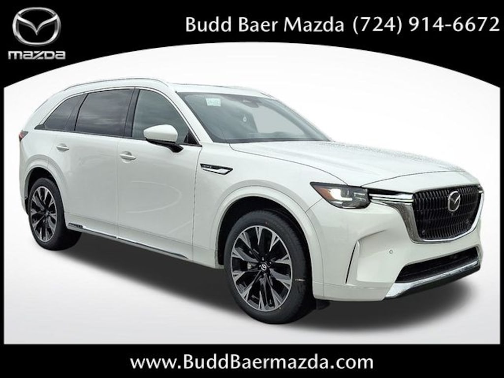 What Does Budd Baer Mazda Offer Drivers from Washington, Canonsburg, St. Clairsville, Bethel Park and Wheeling? Truly Exceptional Customer Service from Every Angle. This vehicle comes equipped with 12 Speakers, 3rd row seats: bench, 4-Wheel Disc Brakes, ABS brakes, Air Conditioning, Alloy wheels, AM/FM radio: SiriusXM, Auto High-beam Headlights, Auto-dimming door mirrors, Auto-dimming Rear-View mirror, Automatic temperature control, Brake assist, Bumpers: body-color, Compass, Delay-off headlights, Driver door bin, Driver vanity mirror, Dual front impact airbags, Dual front side impact airbags, E911 Automatic Emergency Notification, Electronic Stability Control, Emergency communication system: MAZDA CONNECT, Four wheel independent suspension, Front anti-roll bar, Front Bucket Seats, Front Center Armrest w/Storage, Front dual zone A/C, Front reading lights, Fully automatic headlights, Garage door transmitter: HomeLink, Heads-Up Display, Heated door mirrors, Heated front seats, Heated rear seats, Heated steering wheel, Heated/Ventilated Front Bucket Seats, Illuminated entry, Infotainment System Voice Command, Knee airbag, Leather Shift Knob, Leather steering wheel, Low tire pressure warning, Mazda Connected Services, Mazda Online Navigation, Memory seat, Nappa Leather Seat Trim, Navigation system: MAZDA CONNECT, Occupant sensing airbag, Outside temperature display, Overhead airbag, Overhead console, Panic alarm, Passenger door bin, Passenger vanity mirror, Power door mirrors, Power driver seat, Power Liftgate, Power moonroof, Power passenger seat, Power steering, Power windows, Radio Broadcast Data System Program Information, Radio data system, Radio: : AM/FM w/HD/Bose 12-Speaker Sound System, Rain sensing wipers, Rear air conditioning, Rear anti-roll bar, Rear reading lights, Rear seat center armrest, Rear window defroster, Rear window wiper, Remote keyless entry, Rhodium White Premium Paint Charge, Security system, SMS Text Msg Audio Delivery and Reply, Speed control, Speed-sensing steering, Split folding rear seat, Spoiler, Steering wheel memory, Steering wheel mounted audio controls, Tachometer, Telescoping steering wheel, Tilt steering wheel, Traction control, Trip computer, Turn signal indicator mirrors, Variably intermittent wipers, Ventilated front seats, Ventilated rear seats, Wheel Locks, and Wheels: 21 x 9.5j Machine Cut Aluminum Alloy. KBB Fair Market Range High: $58,200 3.3 Turbo S Premium Plus 23/28 City/Highway MPG