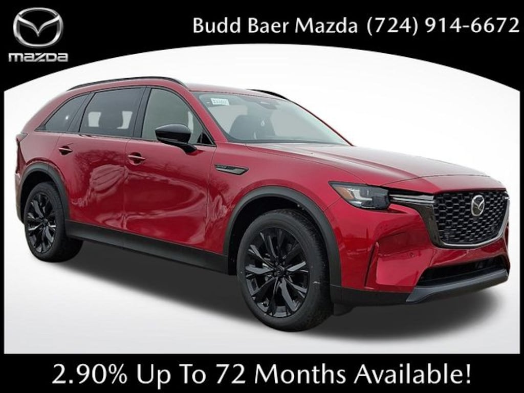 What Does Budd Baer Mazda Offer Drivers from Washington, Canonsburg, St. Clairsville, Bethel Park and Wheeling? Truly Exceptional Customer Service from Every Angle. This vehicle comes equipped with 12 Speakers, 3rd row seats: bench, 4-Wheel Disc Brakes, ABS brakes, Air Conditioning, Alloy wheels, AM/FM radio: SiriusXM, Auto High-beam Headlights, Auto-dimming door mirrors, Auto-dimming Rear-View mirror, Automatic temperature control, Black Liftgate Garnish, Black Lug Nuts and Black Wheel Locks, Brake assist, Bumpers: body-color, Compass, Delay-off headlights, Digital Rearview Mirror with HomeLink, Driver door bin, Driver vanity mirror, Dual front impact airbags, Dual front side impact airbags, E911 Automatic Emergency Notification, Electronic Stability Control, Emergency communication system: MAZDA CONNECT, Exterior Parking Camera Rear, Four wheel independent suspension, Front anti-roll bar, Front Bucket Seats, Front Center Armrest w/Storage, Front dual zone A/C, Front reading lights, Fully automatic headlights, Garage door transmitter: HomeLink, Heads-Up Display, Heated door mirrors, Heated front seats, Heated rear seats, Heated steering wheel, Heated/Ventilated Front Bucket Seats, Illuminated entry, Infotainment System Voice Command, Knee airbag, Leather Seat Trim, Leather Shift Knob, Leather steering wheel, Low tire pressure warning, Mazda Connected Services, Mazda Online Navigation, Memory seat, Navigation system: MAZDA CONNECT, Occupant sensing airbag, Outside temperature display, Overhead airbag, Overhead console, Panic alarm, Passenger door bin, Passenger vanity mirror, Power door mirrors, Power driver seat, Power Liftgate, Power moonroof, Power passenger seat, Power steering, Power windows, Radio Broadcast Data System Program Information, Radio data system, Radio: : AM/FM w/HD/Bose 12-Speaker Sound System, Rain sensing wipers, Rear air conditioning, Rear anti-roll bar, Rear reading lights, Rear seat center armrest, Rear window defroster, Rear window wiper, Remote keyless entry, SMS Text Msg Audio Delivery and Reply, Soul Red Crystal Metallic Paint Charge, Speed control, Speed-sensing steering, Split folding rear seat, Spoiler, Steering wheel mounted audio controls, Tachometer, Telescoping steering wheel, Tilt steering wheel, Traction control, Trip computer, Turn signal indicator mirrors, Variably intermittent wipers, Ventilated front seats, and Wheels: 21 x 9.5J Aluminum Alloy with Black Metal Finish. KBB Fair Market Range High: $48,000 3.3 Turbo Premium 23/28 City/Highway MPG